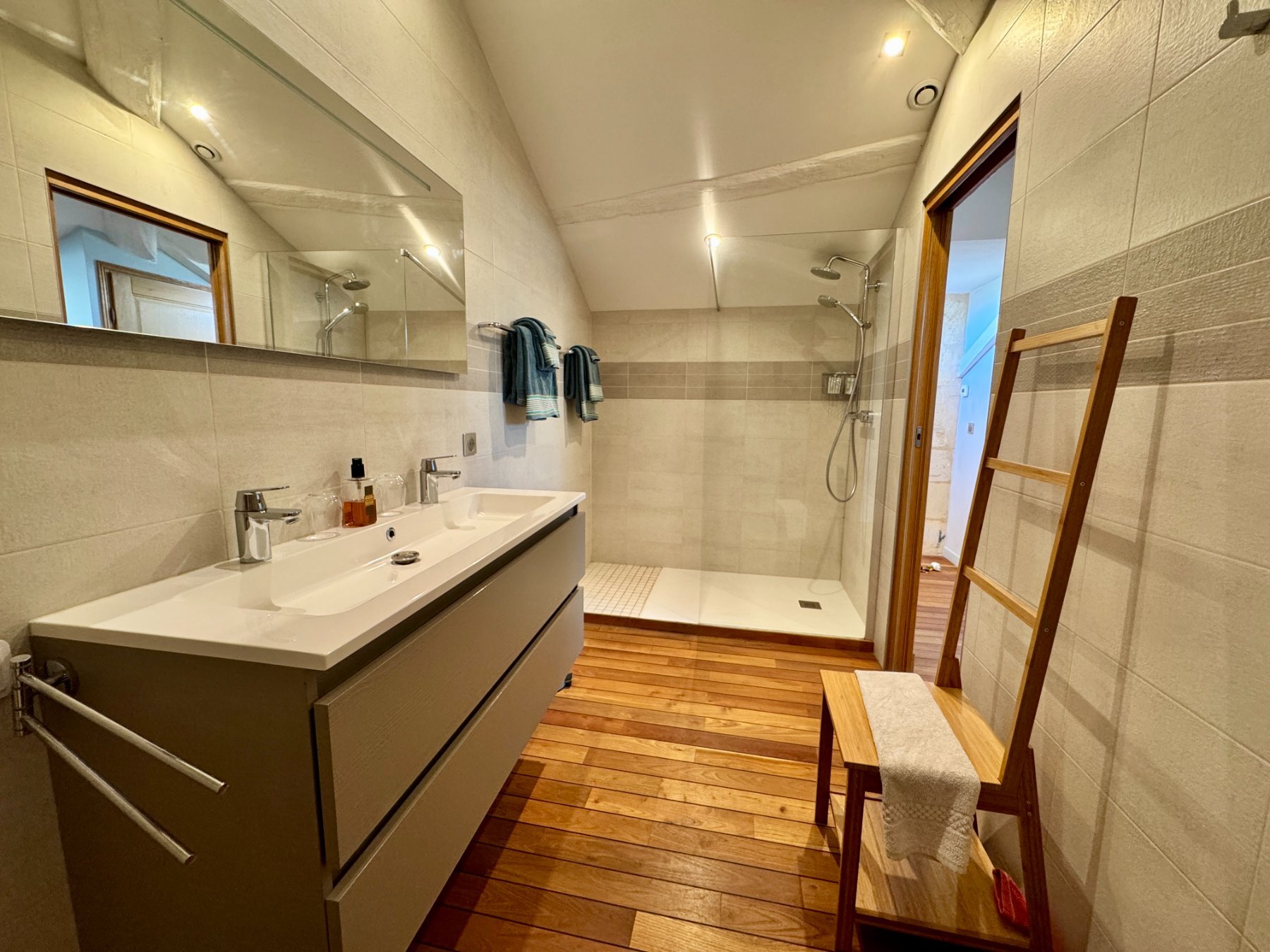 La salle de bains privative, moderne et confortable, est équipée d’une douche à l’italienne, de toilettes indépendantes, d’un sèche-cheveux et d’articles de toilette offerts.