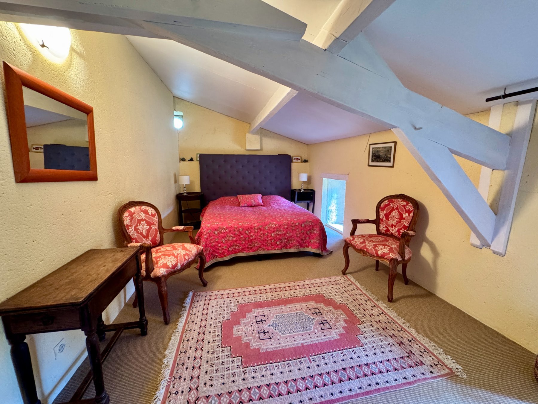 Entourée de vignobles, de champs de céréales et de bois, la propriété invite à la promenade et au footing grâce à ses sentiers aménagés permettant de faire le tour du domaine à pied. Les cyclistes y trouvent aussi leur intérêt car une piste peut conduire directement au domaine. Les trois pièces de vie du rez de chaussée ouvrent sur une terrasse privative avec barbecue et transats, idéale pour des dîners sous les étoiles ou des moments de détente à l’ombre des marronniers. Balançoires pour les plus petits.